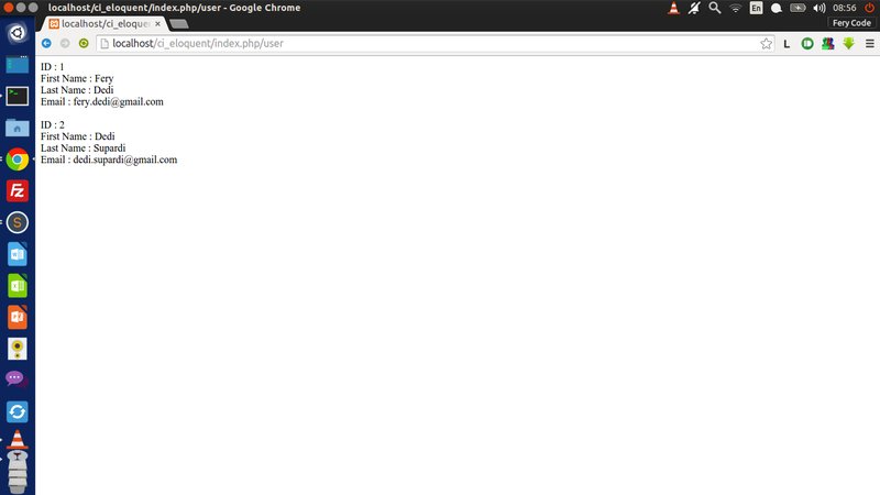 Eloquent ORM adalah Object Relational Mapping bawaan dari framework Laravel. Eloquent ORM memudahkan developer untuk bekerja dengan database. Eloquent ORM memetakan setiap tabel di database ke dalam class model. Dengan ORM kita dapat memetakan tabel-tabel di database beserta relasi ke dalam class-class object dengan menerapkan Object Oriented Programming (OOP). Bagi anda yang menggunakan framework Laravel tentu sudah terbiasa menggunakan Eloquent ORM. Namun tahukah anda kita juga dapat mengintegrasikan Eloquent ORM ke dalam framework Codeigniter. Kali ini kita akan membahas cara Integrasi Eloquent ORM Dengan Codeigniter 3.0.